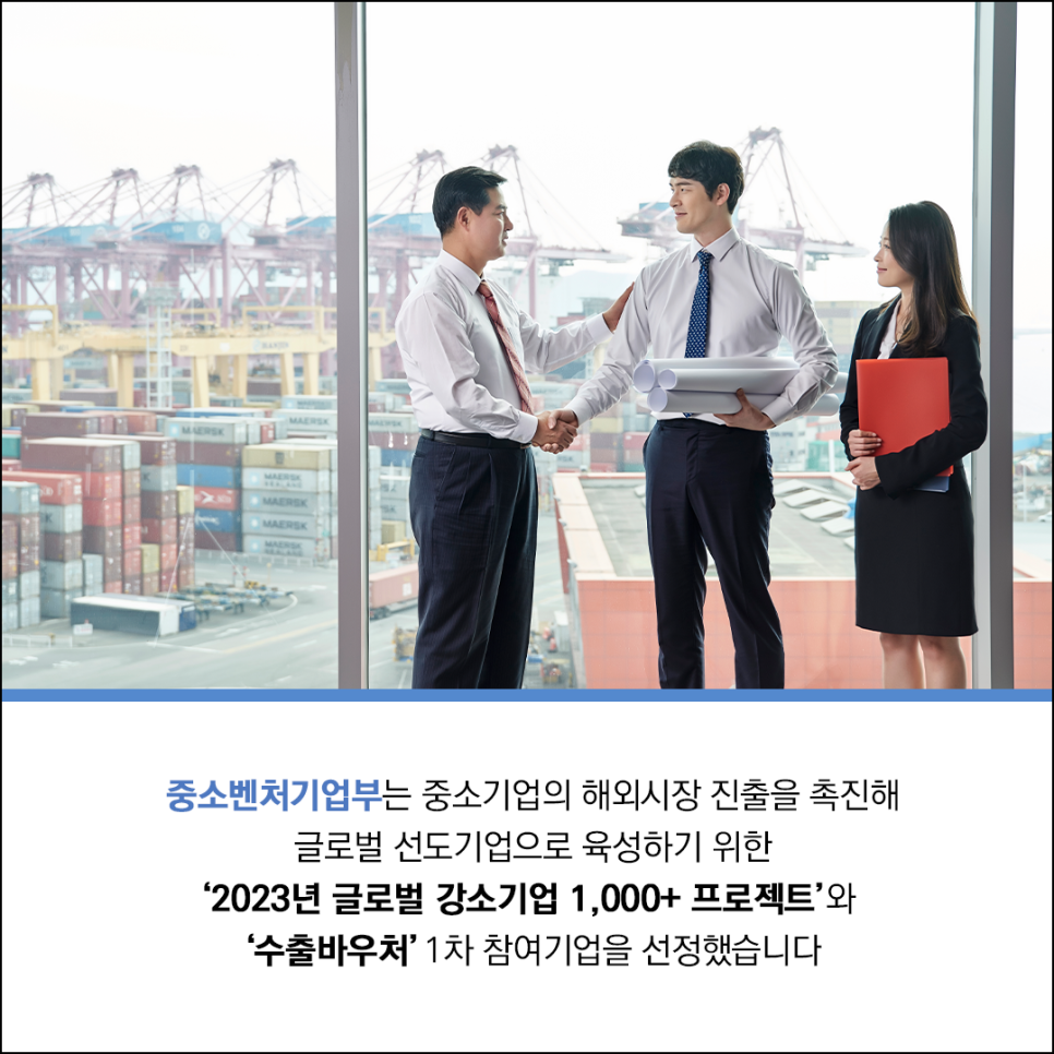 중소벤처기업부(장관 이영)는 중소기업의 해외시장 진출을 촉진하여 글로벌 선도기업으로 육성하기 위한 ‘2023년 글로벌 강소기업 1,000+ 프로젝트’ 및 ‘수출바우처(1차)’ 참여기업을 선정했다고 밝혔습니다.