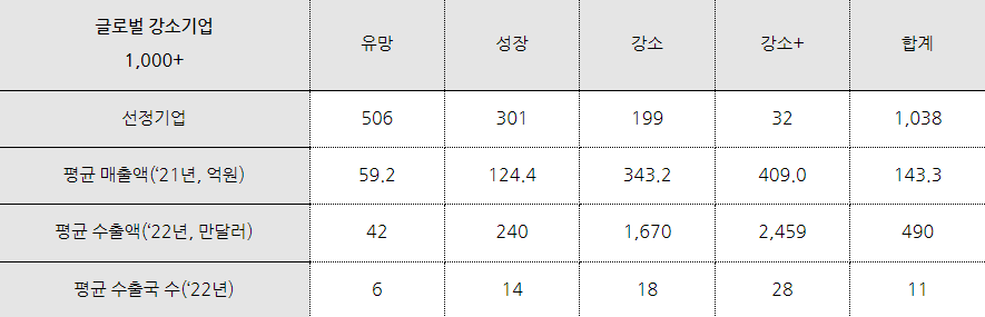 2023 글로벌 강소기업 1,000+ 선정 현황