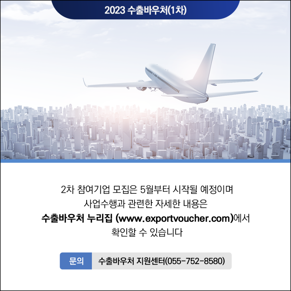 사업수행과 관련한 자세한 내용은 수출바우처 누리집 (www.exportvoucher.com)에서 확인할 수 있으며, 기타 사업 관련 세부적 사항은 수출바우처 지원센터(055-752-8580)로 문의할 수 있습니다.